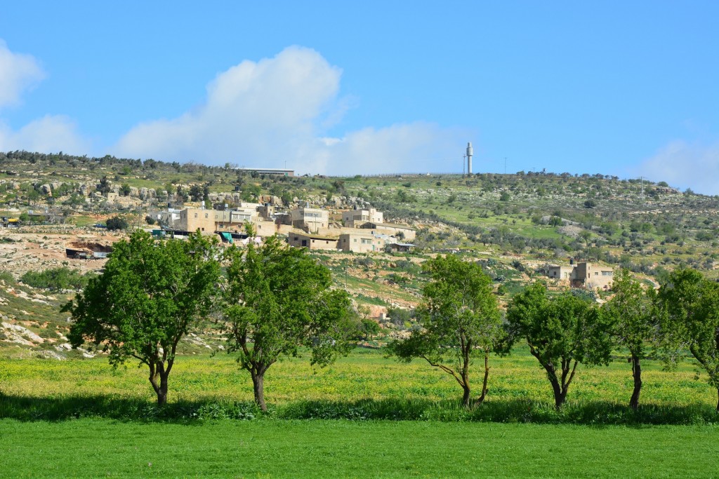 Åkern ligger insprängd böljande vackert mellan bergstoppar med utsikt över Tormus’ayya längre ned i dalen. På närliggande kullar ligger utposter från bosättningen Shilo.