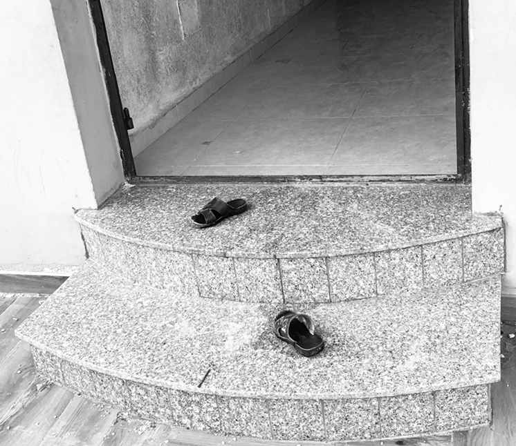 Nästa stopp är vid ett flerfamiljshus där två lägenheter har fått rivningsorder. Vi följeslagare tittar oss lite förvirrat runt, hur är det möjligt? Hisham förklarar lite uppgivet.