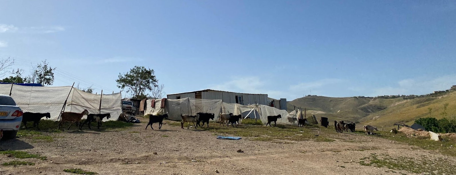 Under vårt besök i Khan al-Ahmar träffar vi byns talesperson Abu Khamis. Han har medievana och spottar ur sig viktiga händelser och årtal och vi kan inget annat än lyssna och ta in. Han berättar att byn länge har varit en måltavla för rivning och blivit en symbol för den palestinska kampen mot Israels ockupation. Han berättar att byn har en stor betydelse för de fem närliggande beduinbyarna och att om byn försvinner kommer andra beduinsamhällen också försvinna. Han jämför situationen med en dominobricka. Faller en, faller alla.