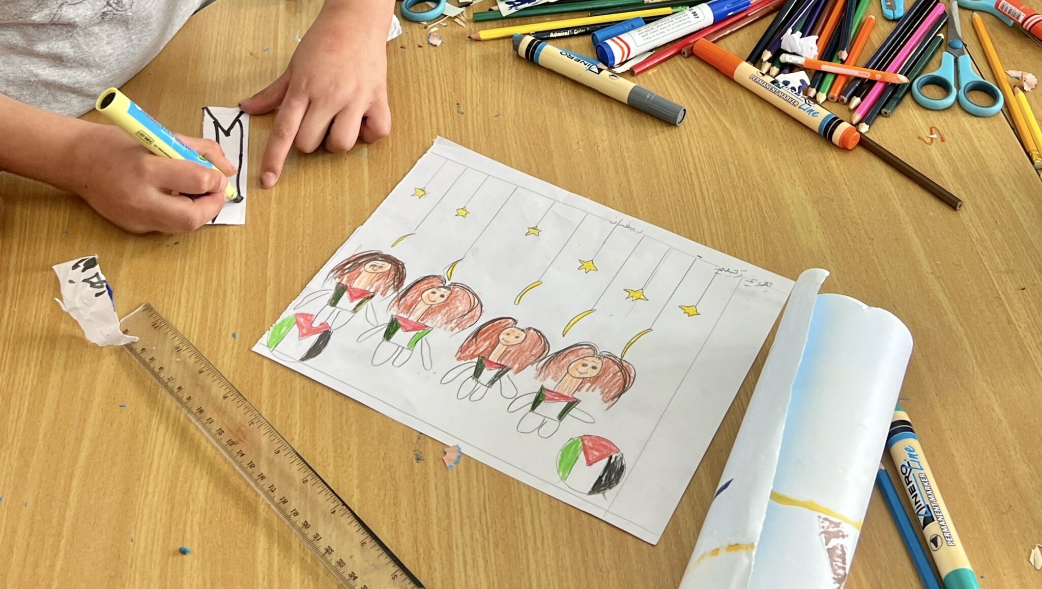 En pojke sprang med en stor palestinsk flagga förbi framför mig, för honom ett tecken på hopp och stolthet. Hans vänner följde efter honom, och en klunga av barn i 10-årsåldern rusade över den gröna konstgräsmattan. Jag hörde deras skratt ekande i luften.