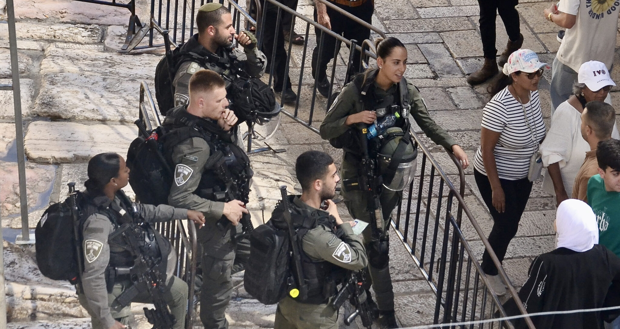 Många av soldaterna och poliserna vi ser är unga, endast 18 år. Det är inte bara i checkpoints som beväpnade tonåringar befinner sig, många bär maskingevär även på sin fritid. Framför stånd med baklava-bakverk, på bussar runt om i Israel, och i det ockuperade palestinska området – överallt syns grönklädda vapenbärare. Roni och Yoel är två unga israeler som gjort värnplikt i den israeliska armén och de delar med sig av sina erfarenheter.