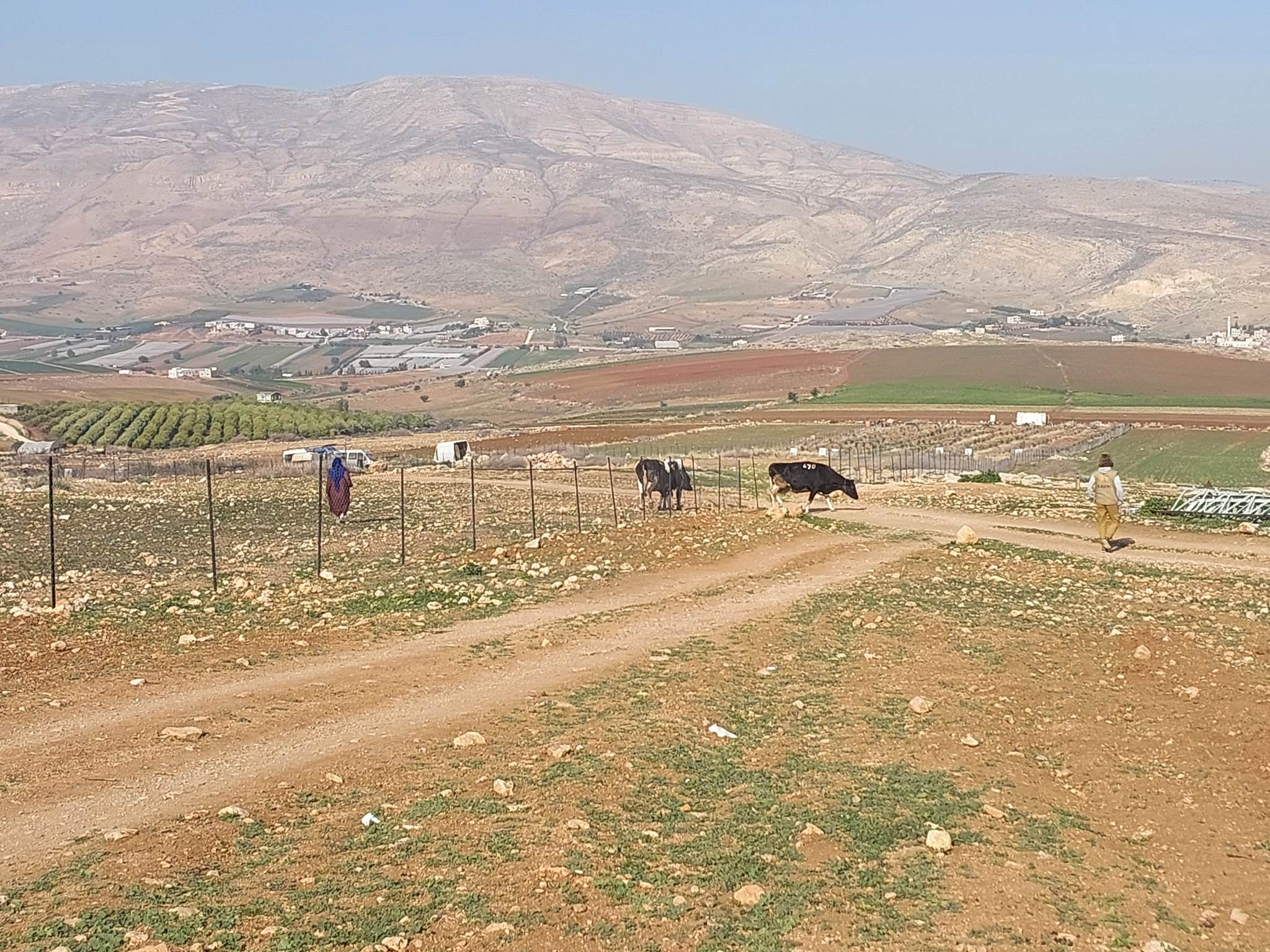 När jag tänker på kvinnoöden i Jordandalen går tankarna först och främst till Aisha Shtayed. Madelene, följeslagare i gruppen före mig, skrev nyligen en rapport om Aisha1https://foljeslagarprogrammet.se/rapporter/jag-vill-att-hela-varlden-ska-veta-vad-som-hander-oss/ . Det finns dock mer att berätta om Aishas liv, och tyvärr har mycket hänt sedan Madelens rapport. Hon har fortfarande värk i revbenen sedan hon misshandlades av den israeliska bosättaren från en närbelägen utpost. Nyligen dog en av hennes tre kor, och hon börjar förlora stödet från sin familj. Aisha och hennes man Nabil bor ensamma i norra Jordandalen, och för ett par veckor sedan kom en av hennes bröder förbi och vädjade att hon skulle flytta. Han förstår inte hur hon står ut med bristen på el och bosättarens attacker. Aisha vägrar, hon klarar inte av tanken på att bosättaren ska ta över marken.