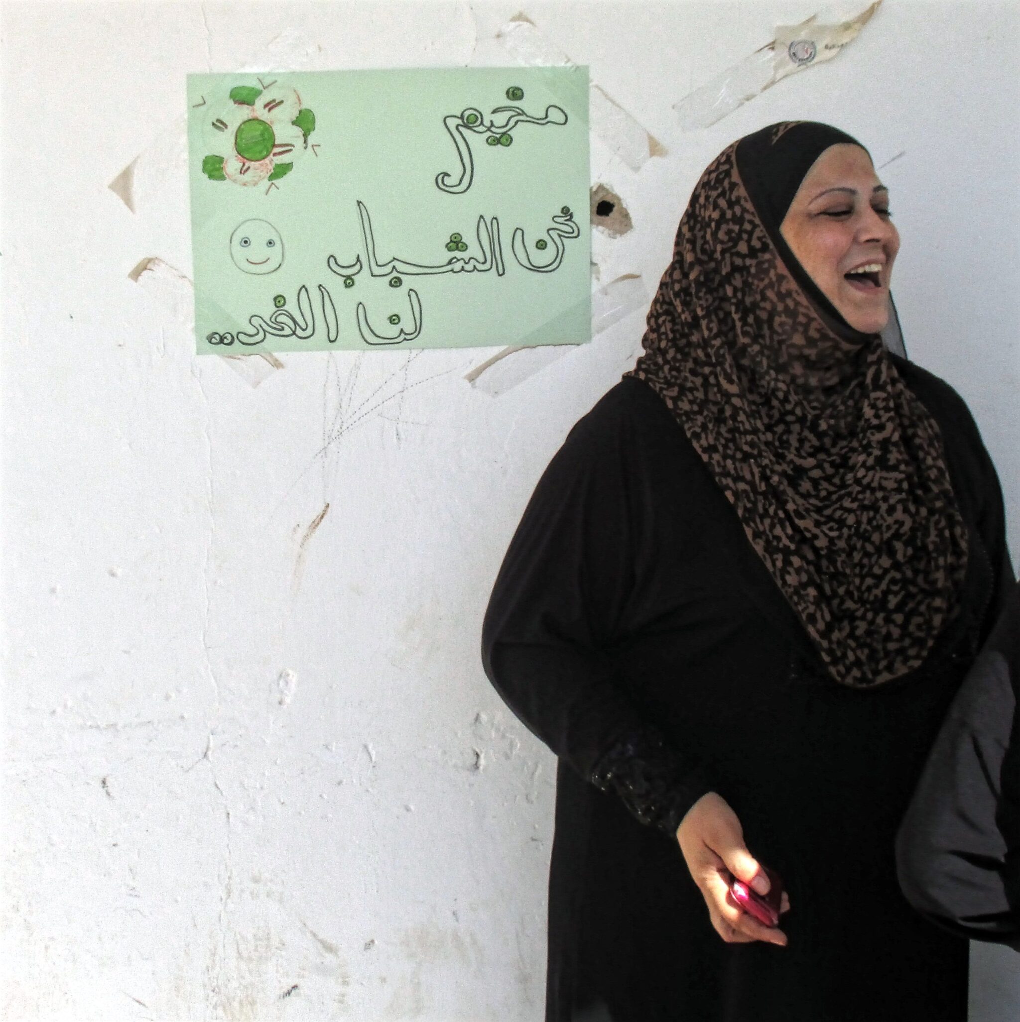 Vårt första besök i flyktinglägret Aqbat Jaber utanför Jeriko började med att personen vi hade bestämt träff med inte var där. Vi blev istället mottagna av Jemile Abu al-Hazel, som med ett leende inbjöd oss att slå oss ner.