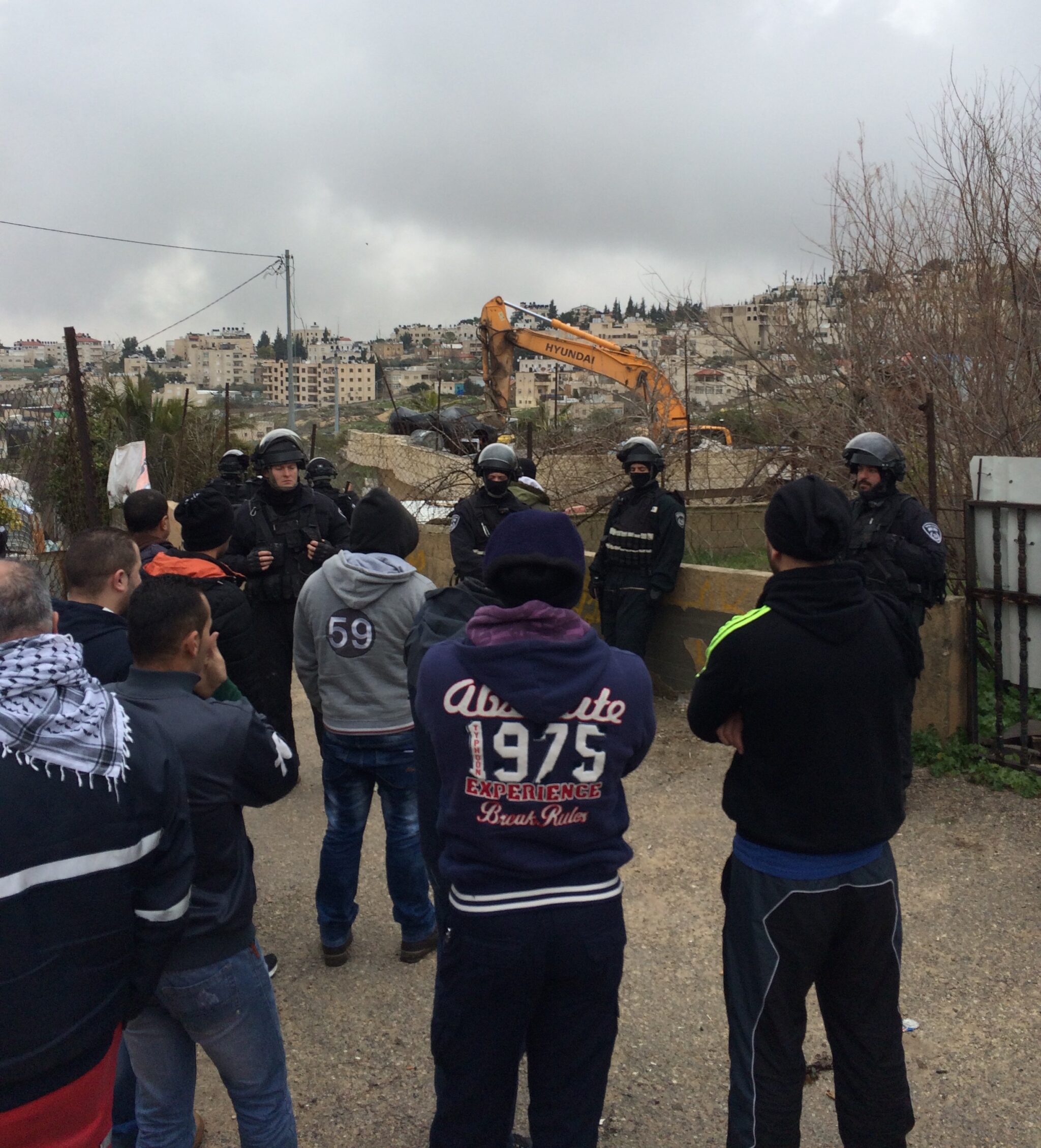 När jag och mina två kollegor anländer till Beit Hanina denna morgon så hörs redan ljudet av en bulldozer. Jag ser den över hustaken. Gatan till huset är avspärrad med ett militärfordon och när vi frågar poliserna som står där om vi får passera fordonet för att komma fram för att prata med familjen säger de tvärt nej. Vi letar oss till en bakväg genom en trädgård och lyckas komma fram till familjen, som står i tårar och ser på hur väggar och tak fullständigt förstörs av bulldozern.