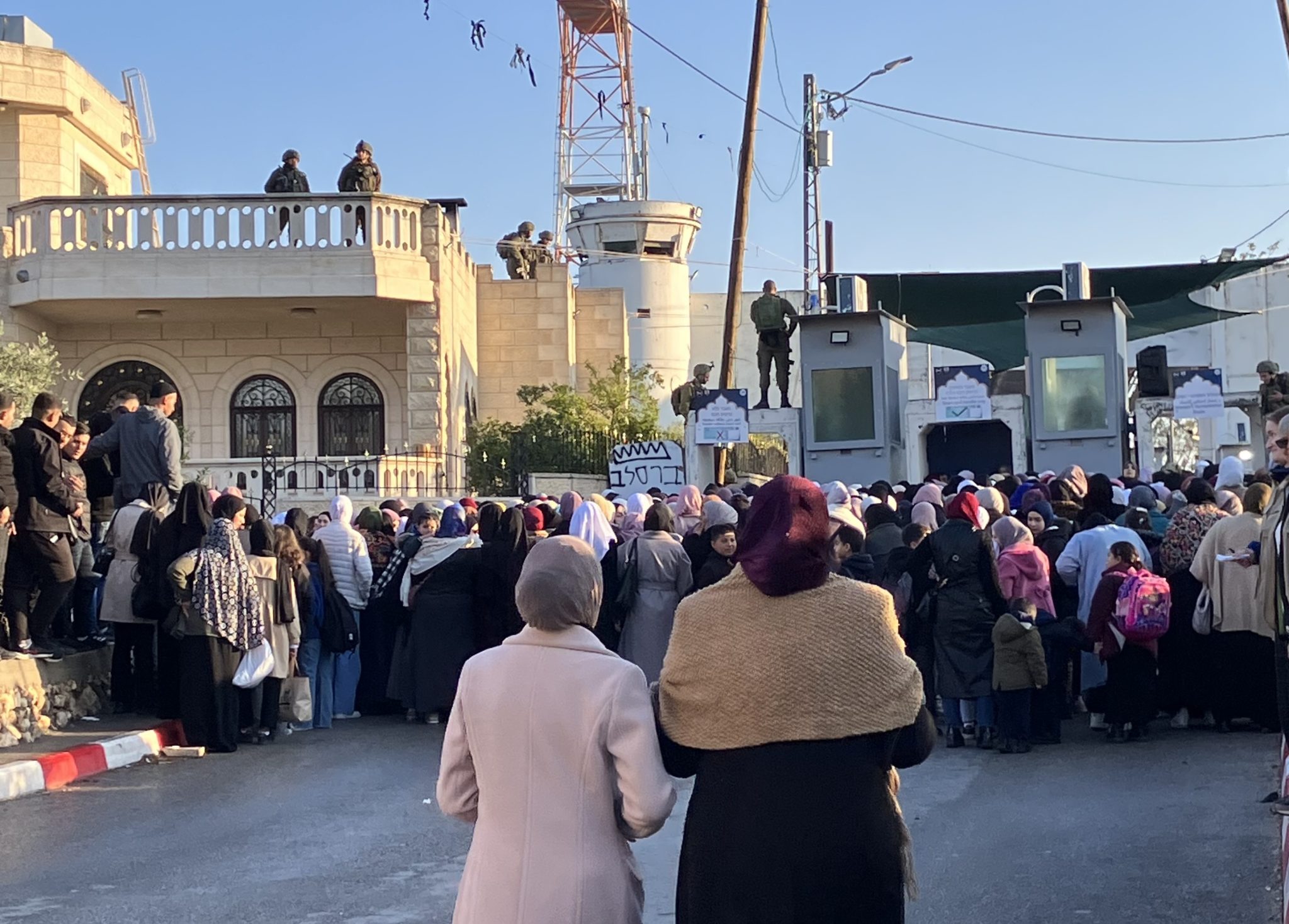 Det är sista fredagen i Ramadan, en stor högtidsdag. Många palestinier från södra Västbanken vill passa på att åka till Jerusalem och al-Aqsa-moskén för att delta i fredagsbönen där. Idag är nämligen en av fyra fredagar på året som alla kvinnor, vare sig de har arbetstillstånd eller inte, ska tillåtas passera genom spärrarna i grannstaden Betlehems checkpoints för att komma till Jerusalem. Israeliska staten gör detta för att tillfredsställa kraven i FN:s fördrag för mänskliga rättigheter avseende rätten att utöva sin tro.