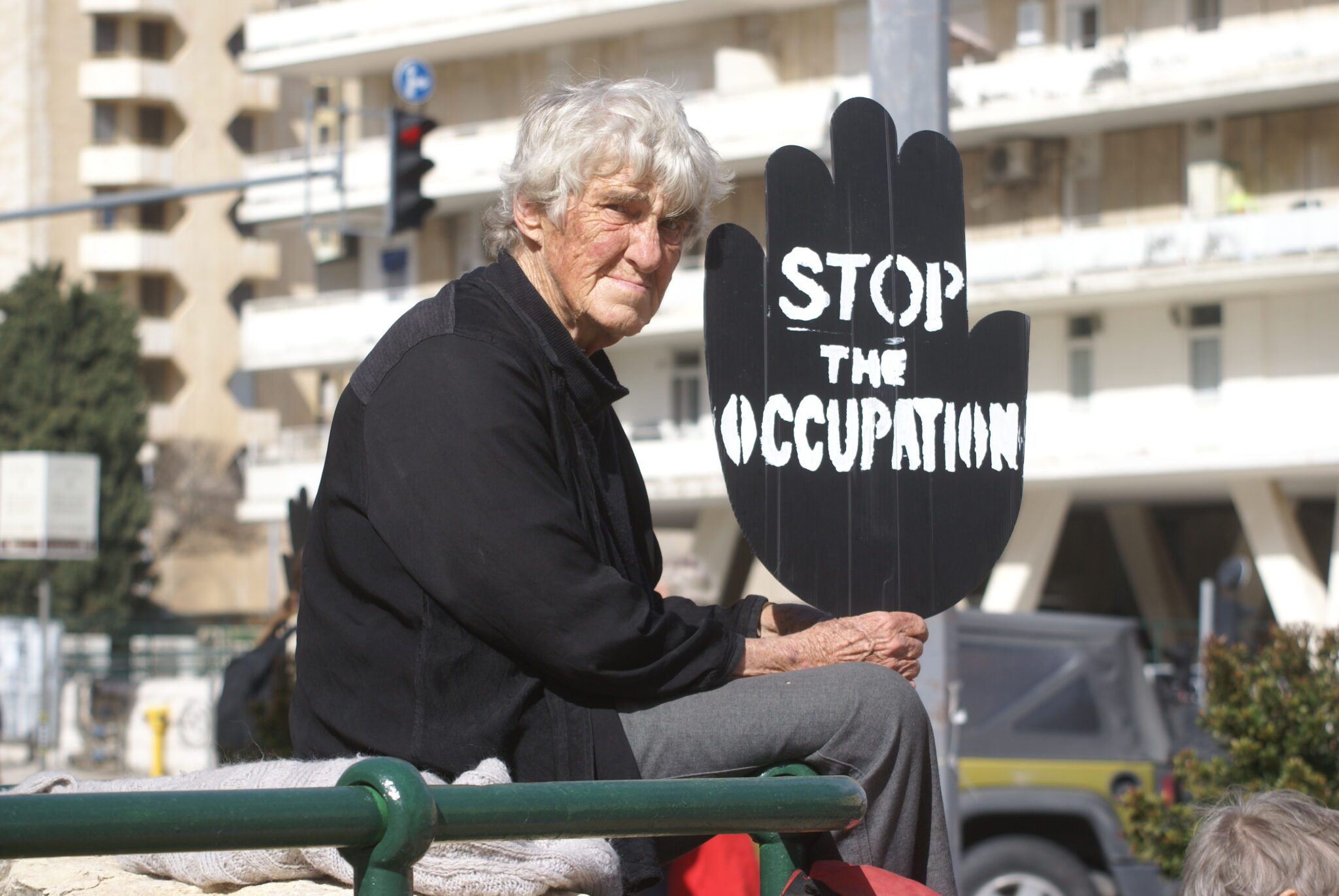 De blir spottade på av förbipasserande och andra visar fingret åt dem. Vi lyssnade när en man stannade och talade med en av kvinnorna. Mannen var aggressiv och frågade vad hon höll på med och om hon var palestinier. Han sa att hon var äcklig. Kvinnan svarade lugnt att hon är född i Israel, är jude, har gjort sin militärtjänst och har fött tre barn som också gjort sin militärtjänst. Hon vill ändå häva ockupationen för fredens och rättvisans skull.