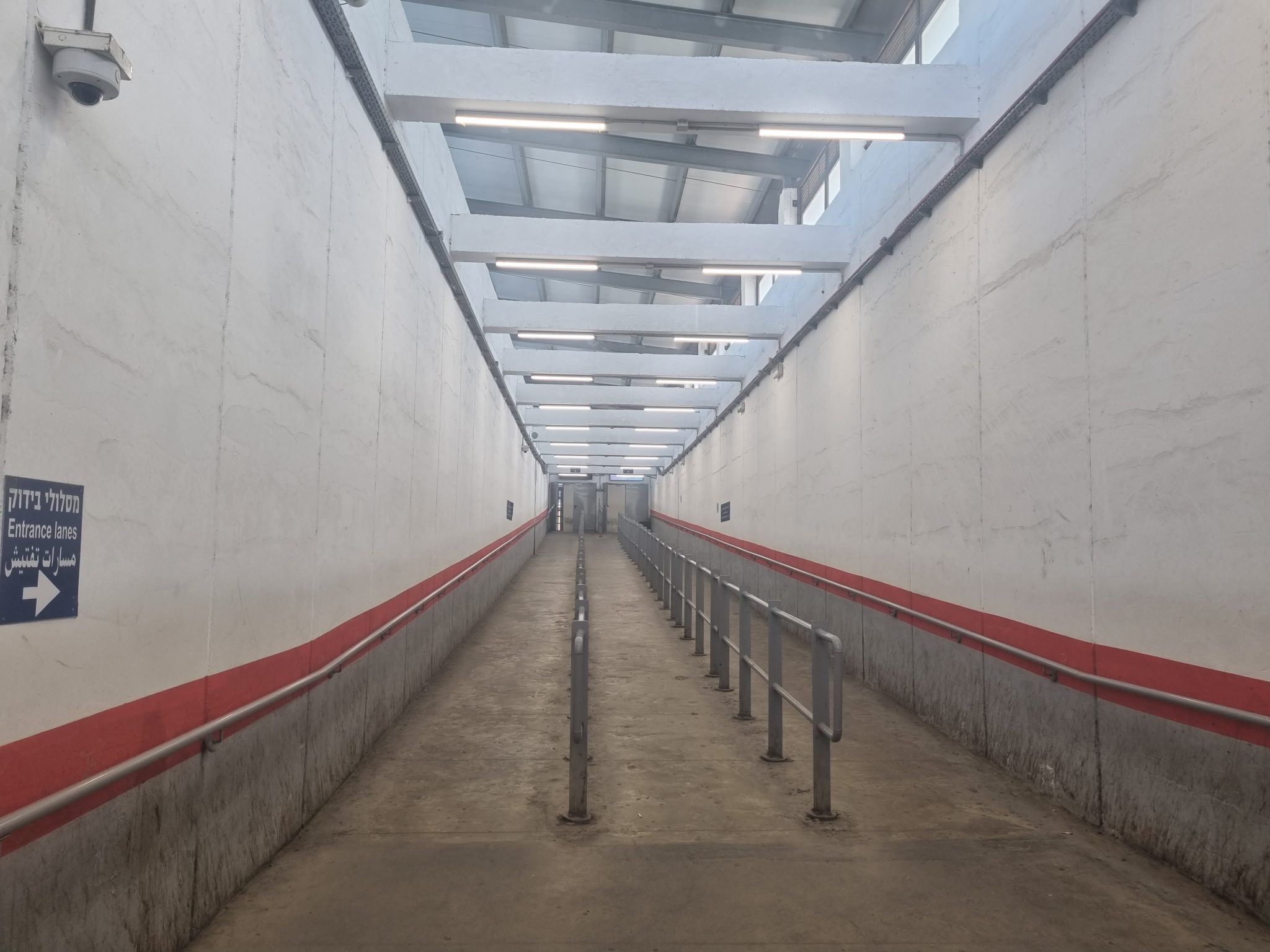 En annan dag står vi vid Vägspärr 300 i Betlehem. Vi träffar en äldre man som hade tid på sjukhus i Jerusalem, men som inte fick komma igenom då han inte hade det intyg som krävdes för att passera. Det finns en mängd olika tillstånd. Vissa har tillstånd som till exempel bara gäller för arbete, och då tillåts du bara passera under arbetstider på vardagar. De stora vägspärrarna ser ut som säkerhetskontroller på flygplatser. När vi ska gå igenom måste vi lägga upp våra väskor på band, gå igenom en scanner och visa pass och visum. Men för oss med våra svenska pass är det aldrig några problem att komma igenom. Vi kan röra oss hur vi vill och igenom vilka vägspärrar vi vill.